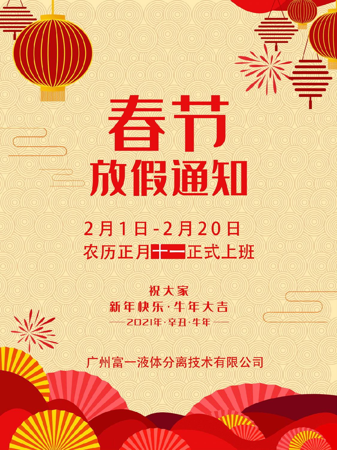 當(dāng)前位置:首頁(yè) » 富一分離機(jī)資訊中心 » 公司新聞 » 2021年富一集團(tuán)春節(jié)放假通知
