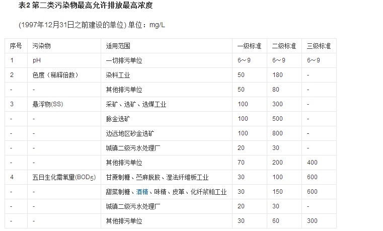 按照國家綜合排放標準與國家行業(yè)排放標準不交叉執(zhí)行的原則,造紙工業(yè)執(zhí)行《造紙工業(yè)水污染物排放標準(GB3544-92)》,船舶執(zhí)行《船舶污染物排放標準(GB3552-83)》,船舶工業(yè)執(zhí)行《船舶工業(yè)污染物排放標準(GB4286-84)》,海洋石油開發(fā)工業(yè)執(zhí)行《海洋石油開發(fā)工業(yè)含油污水排放標準(GB4914-85)》,紡織染整工業(yè)執(zhí)行《紡織染整工業(yè)水污染物排放標準(GB4287-92)》,肉類加工工業(yè)執(zhí)行《肉類加工工業(yè)水污染物排放標準(GB13457-92)》,合成氨工業(yè)執(zhí)行《合成氨工業(yè)水污染物排放標準(GB13458-92)》,鋼鐵工業(yè)執(zhí)行《鋼鐵工業(yè)水污染物排放標準(GB13456-2012)》,航天推進劑使用執(zhí)行《航天推進劑水污染物排放標準(GB14374-93)》,兵器工業(yè)執(zhí)行《兵器工業(yè)水污染物排放標準(GB14470.1~14470.3-93和GB4274~4279-84)》,磷肥工業(yè)執(zhí)行《磷肥工業(yè)水污染物排放標準(GB15580-95)》,燒堿、聚氯乙烯工業(yè)執(zhí)行《燒堿、聚氯乙烯工業(yè)水污染物排放標準(GB15581-95)》,其他水污染物排放均執(zhí)行本標準。