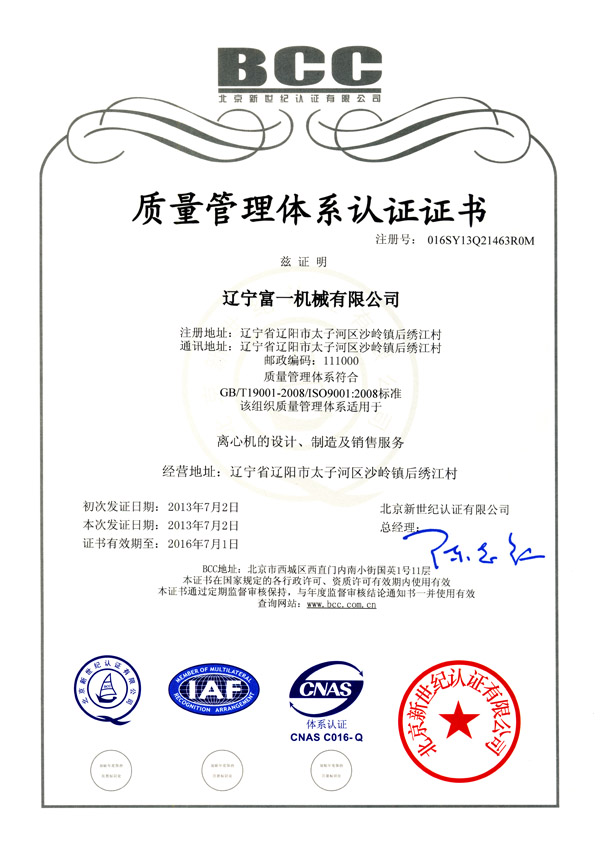 質(zhì)量管理體系認(rèn)證證書